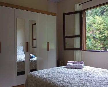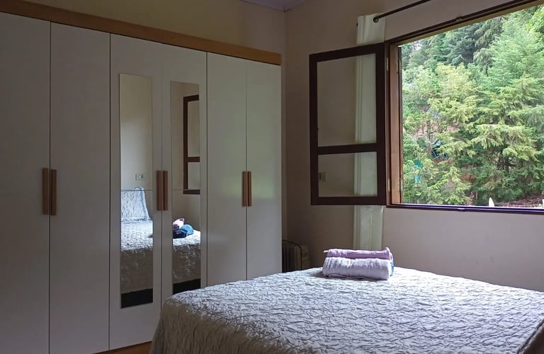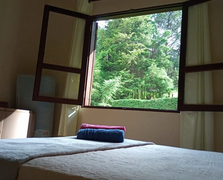 Quartos silenciosos e muito arejados equipados com aquecedores e cama de casal confortável, planejado para oferecer uma noite de sono tranquila com o ar puro da serra.