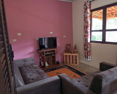 A casa é simples mas uma graça, muito agradável!!! Ainda tem um cachorrinho fofo q vai lá fazer companhia (se a pessoa não gostar, é só fechar a varanda)